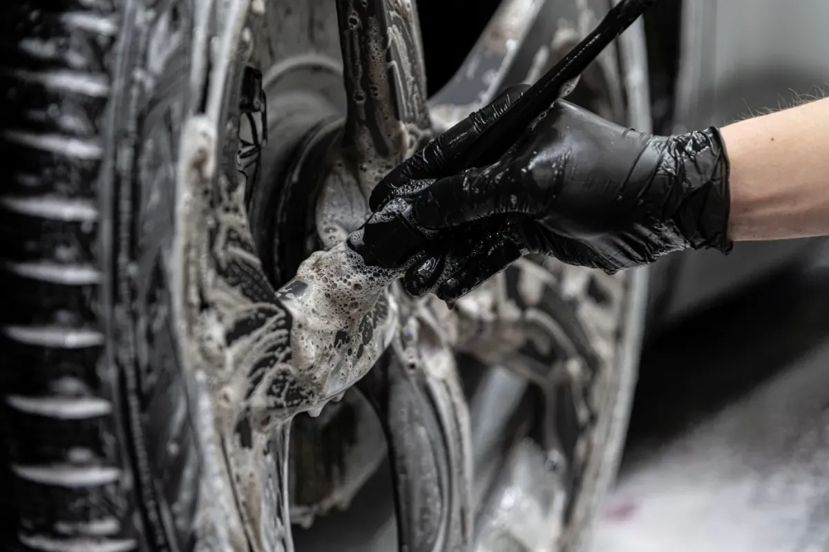 ホイール洗浄後にコーティングの施工を致します。ブレーキダスト防汚効果などが特徴のオススメなコーティングです。